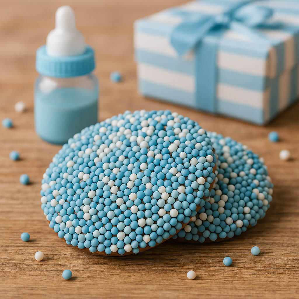 Grote geboorte flikken musket (oublies) blauw. Verpakt per 500 gram.